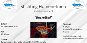 Actuele nieuws Sportdagen en evenementen September 2024 In juli hebben wij het volgende gepland staan: Sportdagen Evenementen Voor meer informatie en aanmeldingen kunt u mailen naar st.homenetmen@gmail.com